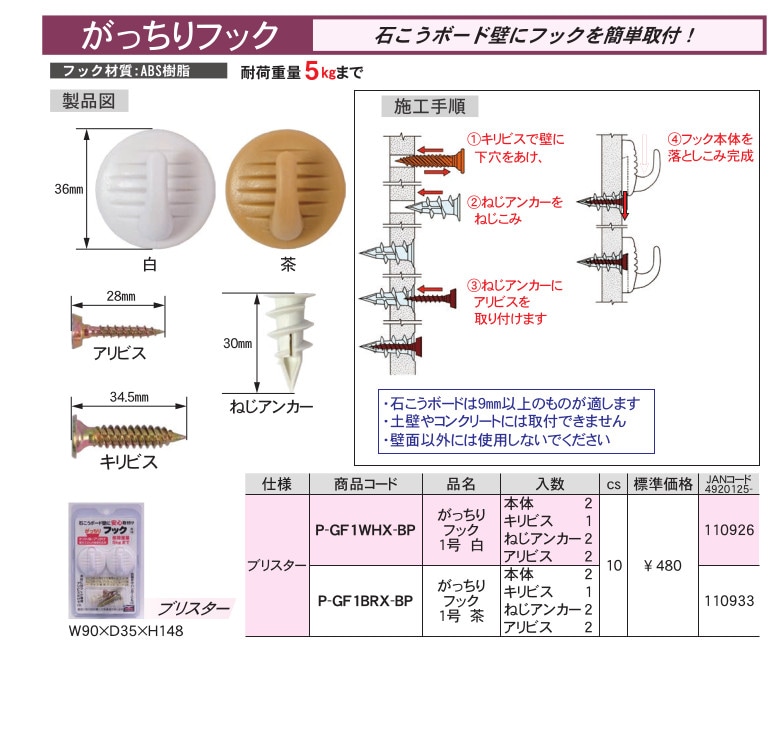ダンドリビス がっちりフック (石こうボード壁にフックを簡単取付!)