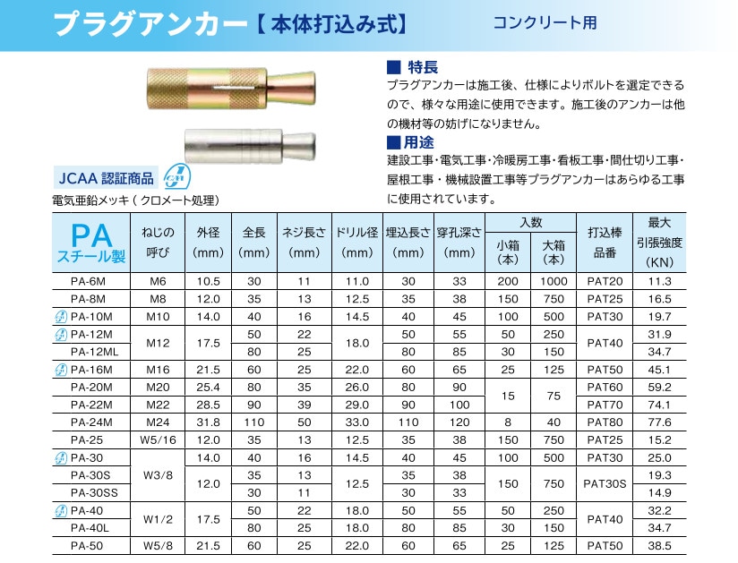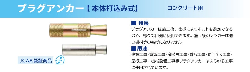 プラグアンカー(本体打込み式〉コンクリート用/溶融亜鉛メッキ(ドブメッキ)