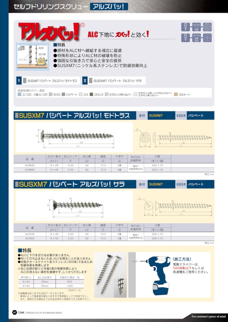 ALC専用ビス ドリームスクリュー 皿頭・ナベ頭 (鉄ラスパート・ステンレスXM-7)