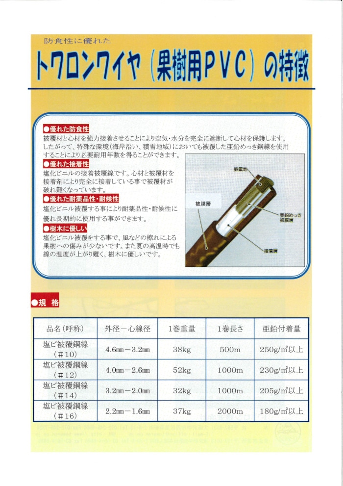 トワロンワイヤ(果樹用PVC)塩ビ被覆鋼線