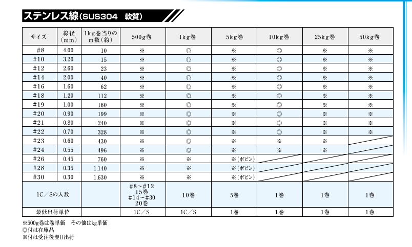 ステンレス線 (SUS304 軟質) 1kg巻・10kg巻