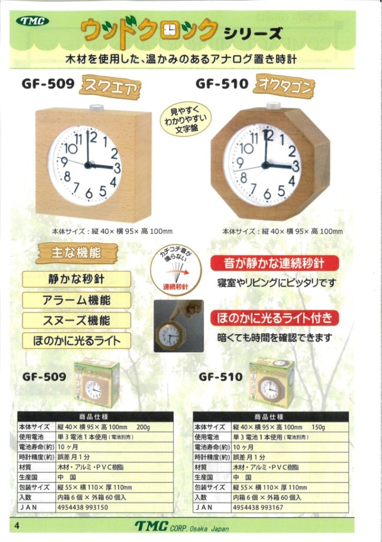 ウッドクロックシリーズ 置き時計