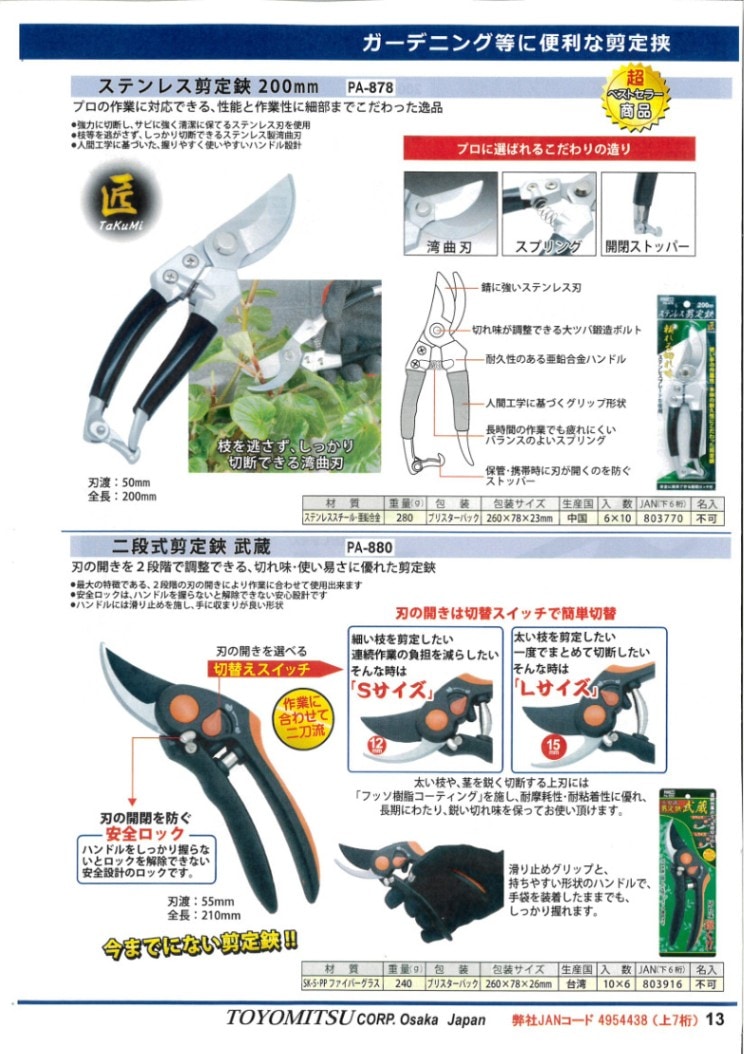 ステンレス剪定鋏200㎜ / 二段式剪定鋏武蔵