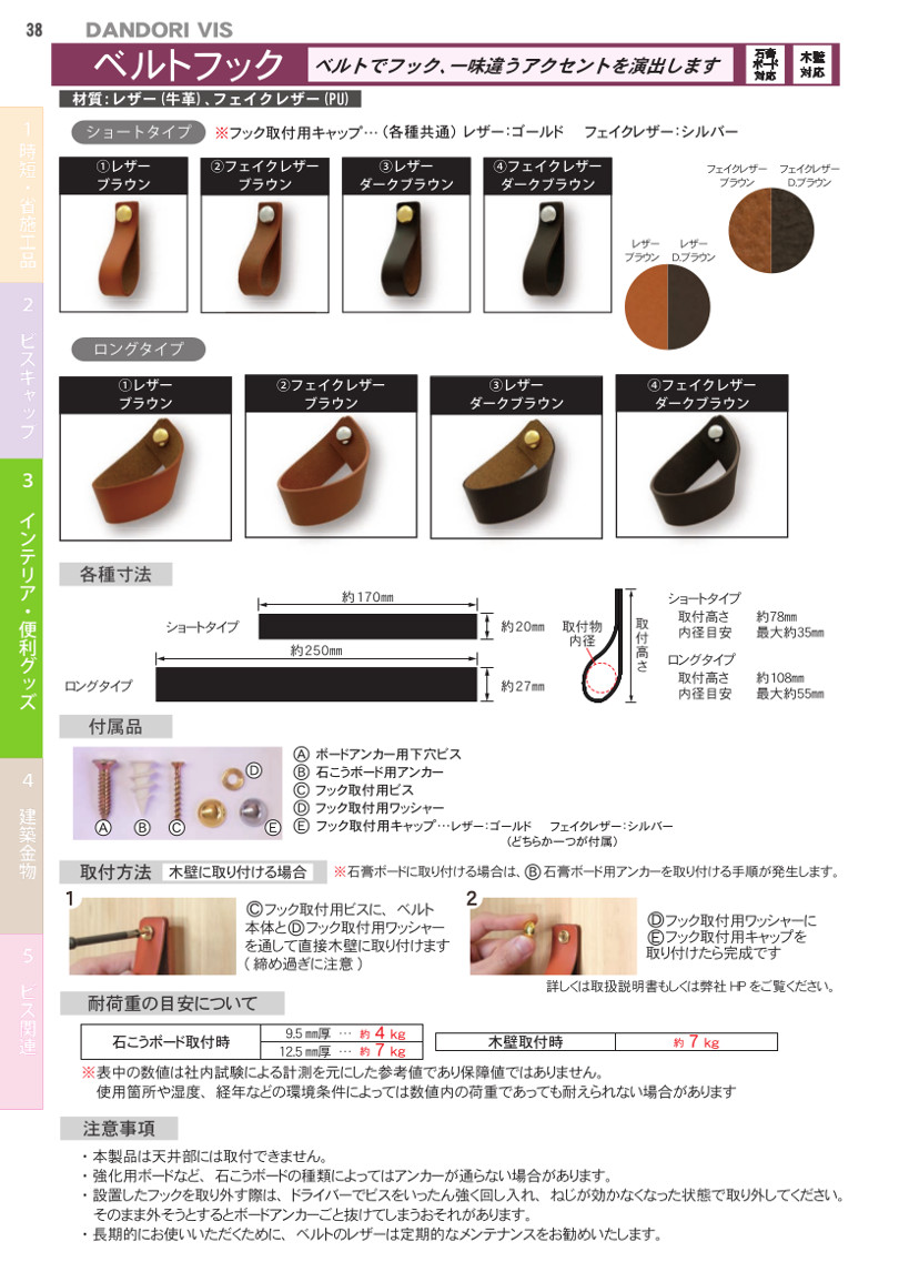 ダンドリビス ベルトフック (木壁・石こうボード取付用)