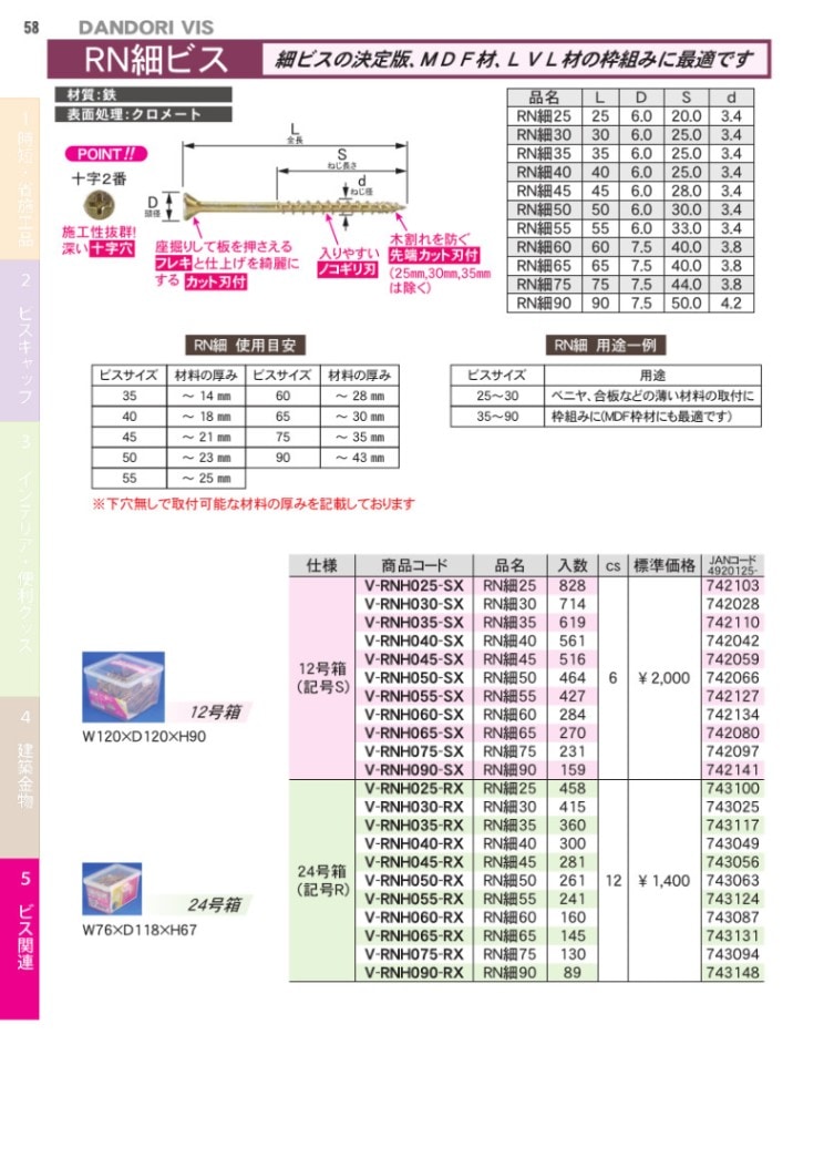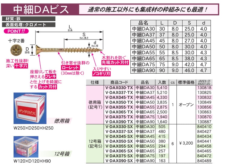 ダンドリビス DKPビス 外張り断熱工法の通気胴縁止めやパネル工法に