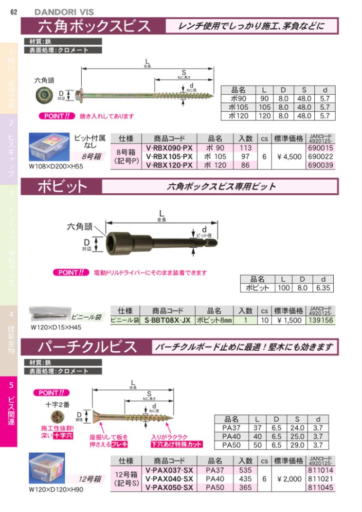 ダンドリビス 極太KKビス / 四角RN極太ビス