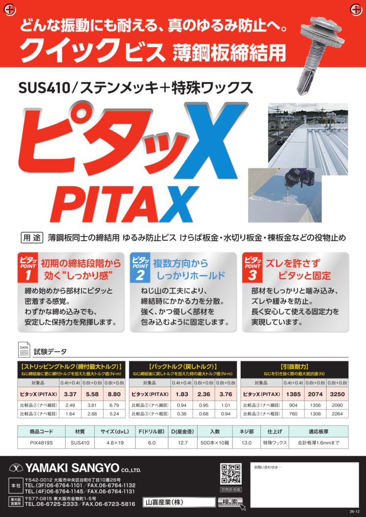 クイックビス 薄鋼板締結用 ピタッX 4.8×19 500本単位