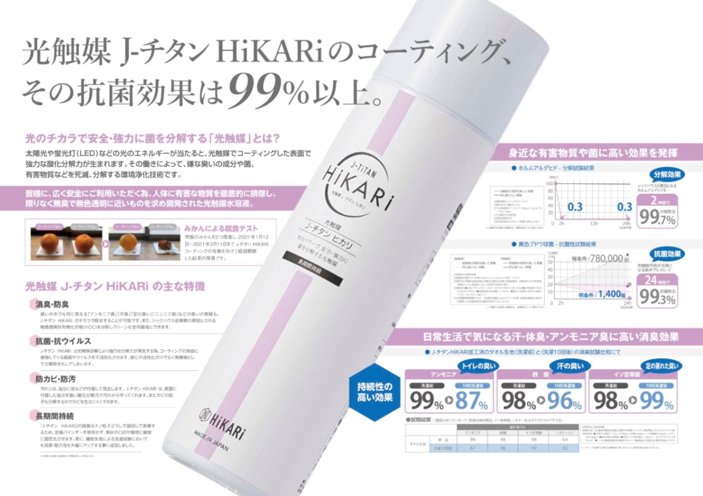 汗・体臭・アンモニア臭 臭い取り 消臭 光触媒 J-チタン HiKARi 抗菌コーティング 防カビ・防汚対策