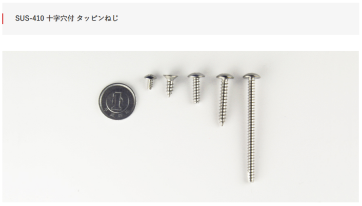 SUS410十字穴付タッピンねじ なべ頭 皿頭 トラス頭 バインド頭 丸皿頭 1種(A型) M4×8mm~45mm 焼入れパシペート付 小箱単位